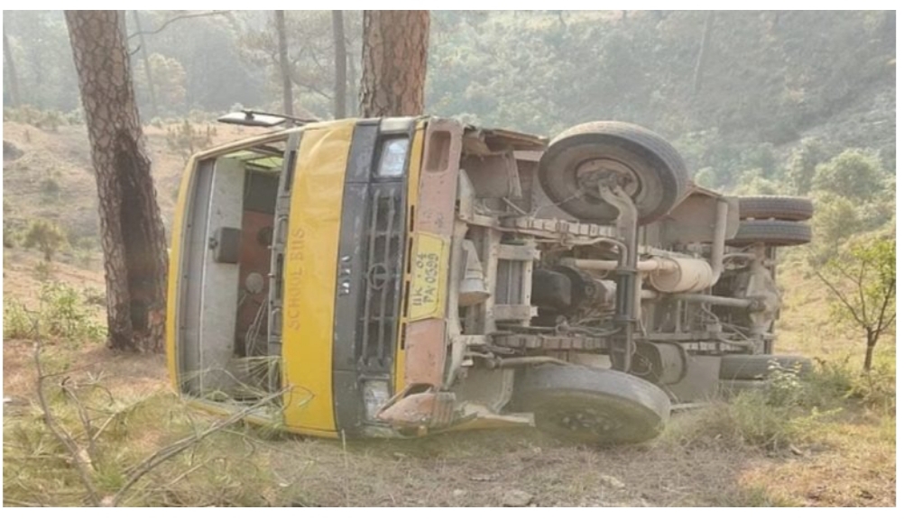 : बेरीनाग:चौकड़ी में बिना चालक के चली स्कूल बस खाई में गिरी दो बच्चे घायल