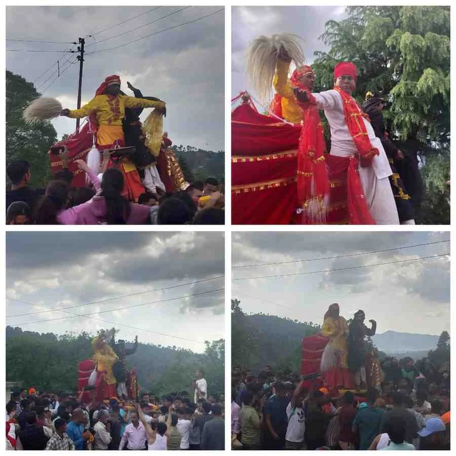 लोहाघाट:चेतोला मेले के हजारों लोग बने साक्षी ढोल नगाड़ों की धमक के साथ निकला चमू देवता का डोला।