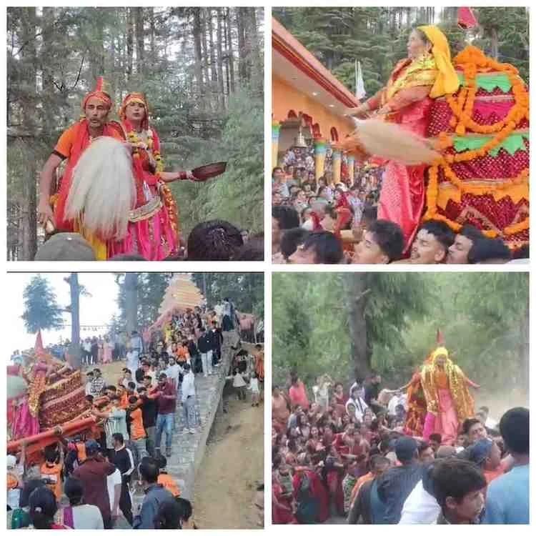 लोहाघाट:चेतोला मेले के हजारों लोग बने साक्षी ढोल नगाड़ों की धमक के साथ निकला चमू देवता का डोला।