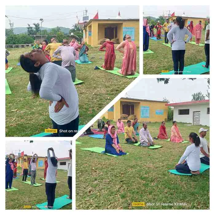 रिपोर्ट:लक्ष्मण बिष्ट 👹👹 : लोहाघाट:अंतर्राष्ट्रीय योग दिवस की तैयारी जोरों पर कर्णकरायत के ग्रामीणों ने किया योग