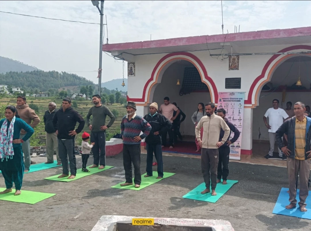 रिपोर्ट:लक्ष्मण बिष्ट 👹👹 : लोहाघाट:एक पृथ्वी एक स्वास्थ्य थीम पर बन्देला ढेक मे विशेष योग शिविर का आयोजन।