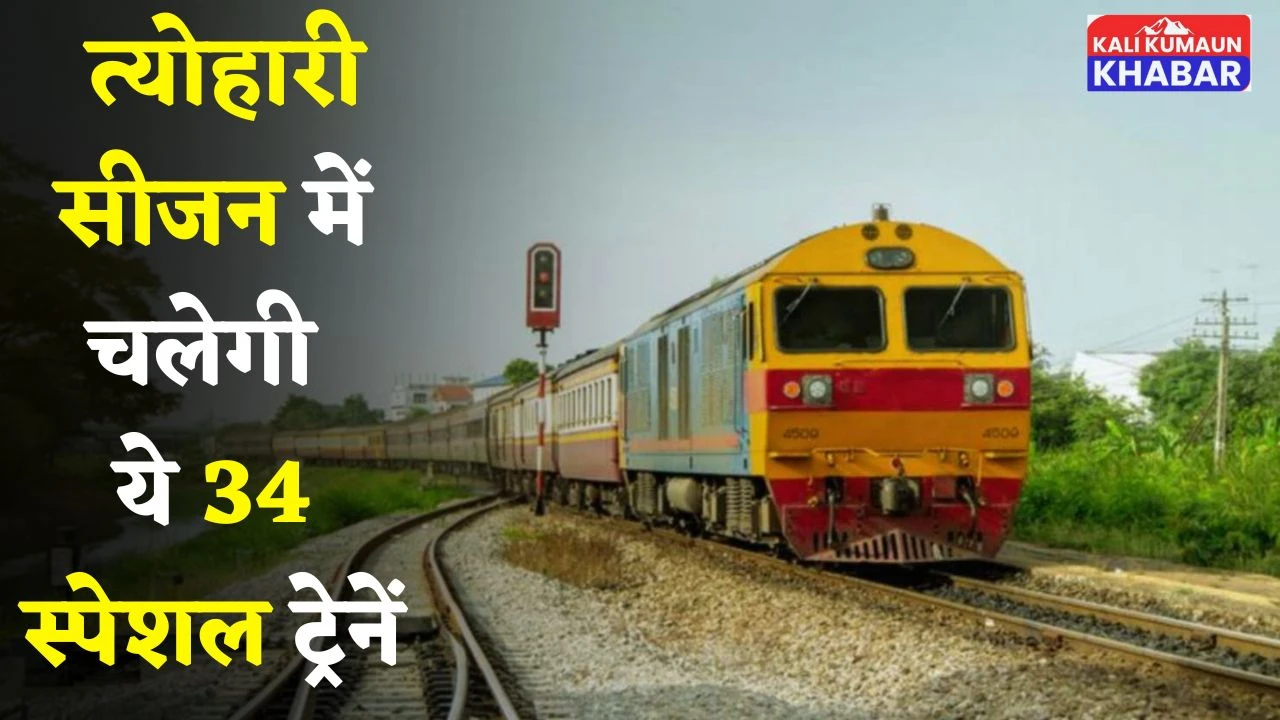 हरियाणा में रेल यात्रियों के लिए बड़ी खुशखबरी आई है। रेल मंत्रालय ने त्योहारी सीजन में यात्रियों की सुविधा के लिए 34 स्पेशल ट्रेनें चलाने की तैयारी कर ली है। ये ट्रेनें हरियाणा, चंडीगढ़, पंजाब, दिल्ली, उत्तर प्रदेश, बिहार, मध्यप्रदेश, जम्मू-कश्मीर, असम, उत्तराखंड, कोलकाता आदि राज्यों से होकर गुजरेंगी।