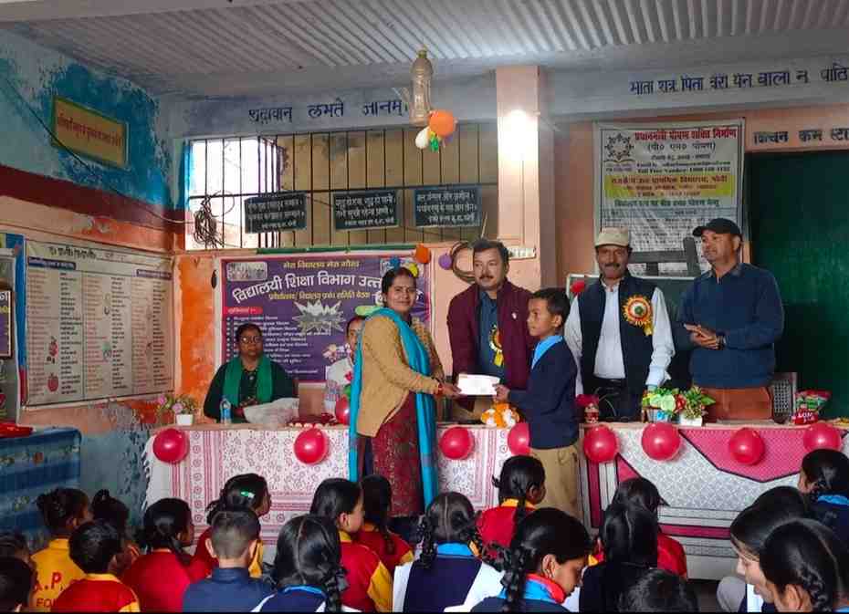 आज मंगलवार को जू0 हा0 फोर्ती में विद्यालय प्रमुख लक्ष्मण सिंह मेहता के संचालन एवं ग्राम प्रधान रेनू बगौली की अध्यक्षता में प्रवेशोत्सव कार्यक्रम आयोजित हुआ। कार्यक्रम में मुख्य अतिथि जिला शिक्षा एवं प्रशिक्षण संस्थान लोहाघाट के प्राचार्य दिनेश खेतवाल एवं डाइट के प्रवक्ता राम बालक मिश्रा ने प्राथमिक एवं उच्च प्राथमिक के 11 नव प्रवेशी बच्चों का तिलक लगाकर माल्यार्पण एवं स्वागत किया। ग्राम प्रधान ने बच्चों को कुछ विषयों में प्राप्त निःशुल्क पाठ्य पुस्तके वितरित की। अतिथियों ने कक्षा 6 में मुख्यमंत्री मेघावी छात्रवृत्ति योजना में चयनित रवि जोशी एवं उसकी माता लक्ष्मी जोशी को 7200 रूपये का चैक दिया गया। प्रवेशोत्सव पर बच्चों ने स्वागत गीत, वंदना तथा सांस्कृतिक कार्यक्रम प्रस्तुत किए। प्रधानाध्यापक मेहता ने विद्यालय में शिक्षकों के रिक्त पदों की पूर्ति हेतु विभाग से किए पत्राचार की जानकारी दी तथा इस अवसर पर विद्यालय की योजनाओं एवं विभागीय विभिन्न सुविधाओं की जानकारी दी तथा विद्यार्थियों की शैक्षिक प्रगति पर चर्चा कर शिक्षार्थियों के हित में अभिभावकों एवं शिक्षकों के बीच संवाद को जरूरी बताया।