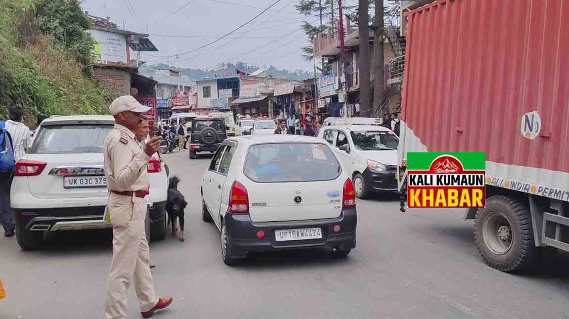 टनकपुर से पिथौरागढ़ की ओर जा रहा तेल का टैंकर आज शुक्रवार 10:30 बजे के लगभग लोहाघाट में वाइन शॉप के पास अचानक राष्ट्रीय राजमार्ग में खराब होकर बीच सड़क पर खड़ा हो गया। टैंकर के बीच सड़क में खराब होने से भीषण जाम लग गया। सड़क के दोनों और वाहनों की दो-दो किलोमीटर लंबी कतारे लग गई।