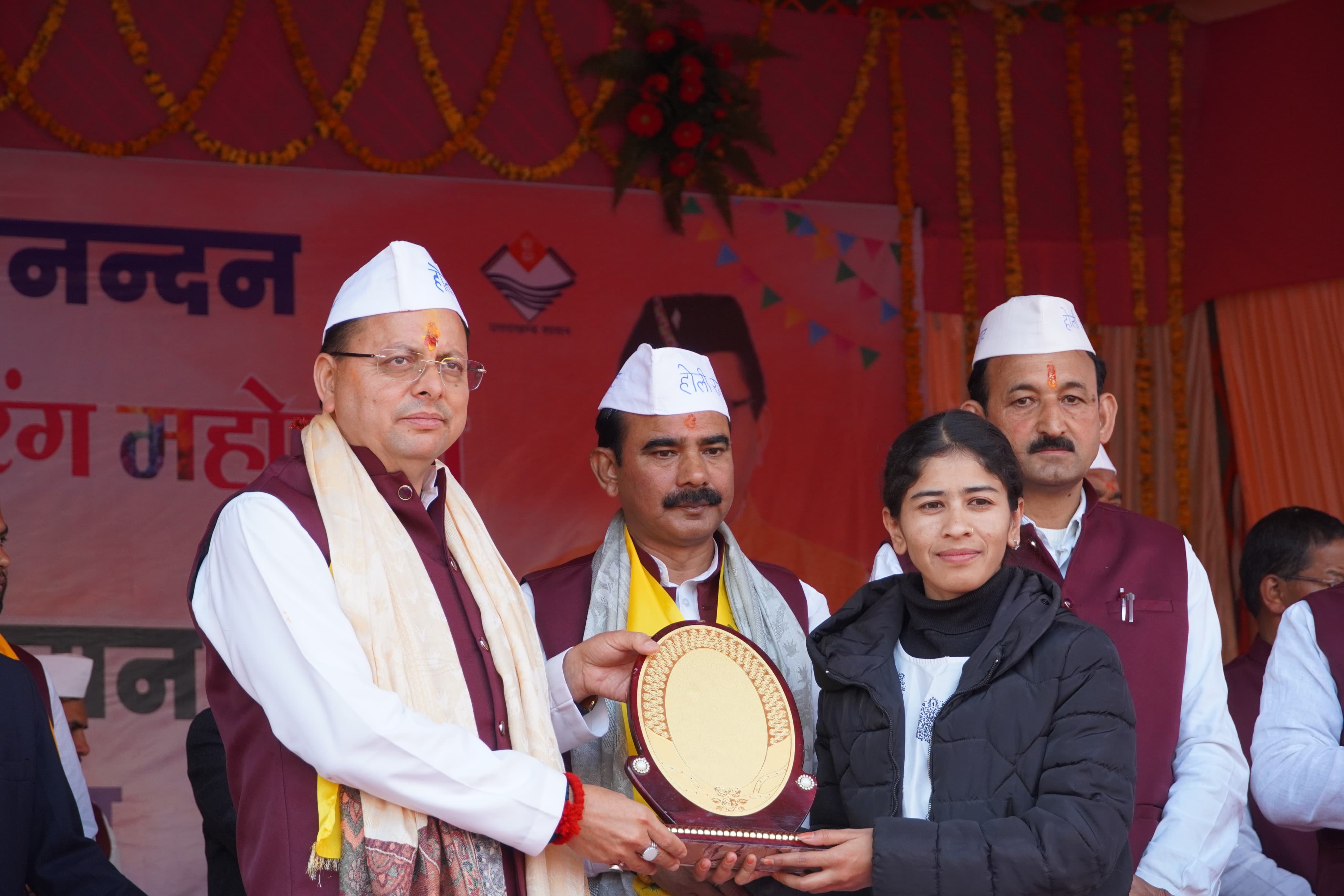 रिपोर्ट:लक्ष्मण बिष्ट : लोहाघाट:सीएम धामी ने कुसुम फर्त्याल को किया सम्मानित