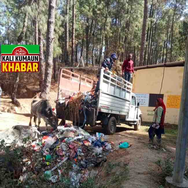 रिपोर्ट:लक्ष्मण बिष्ट : पाटी:नगर पंचायत ने जि0पं0 की अनुमति के बिना कॉम्पेक्ट मशीन परिसर में डाल दिया गीला कूड़ा।