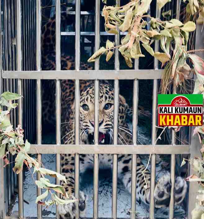 रिपोर्ट:जगदीश जोशी : बाराकोट में वन विभाग के पिंजरे में फंसा गुलदार लोगों को राहत।