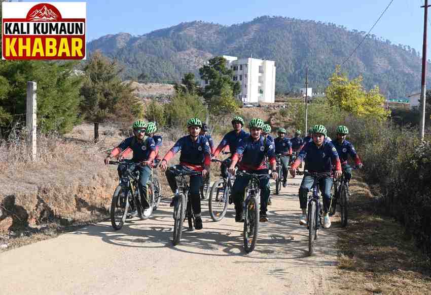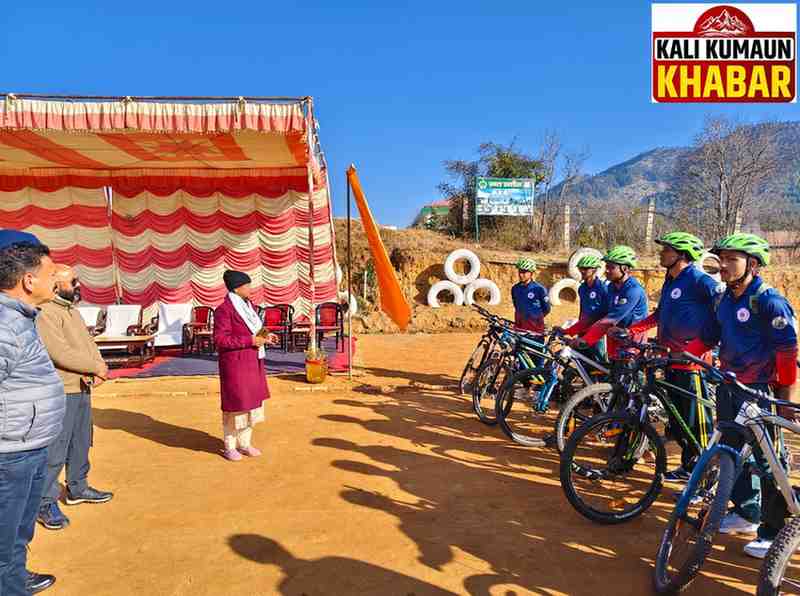 रिपोर्ट:लक्ष्मण बिष्ट : चंपावत:सरस कॉर्बेट महोत्सव में 90 किमी डाउन हिल साइकिल रैली का शुभारंभ आईटीबीपी कमांडेंट ने दिखाई हरी झंडी।