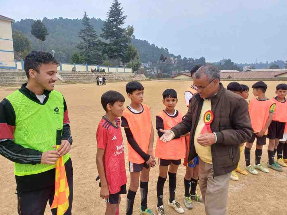 कहा प्रतियोगिता का मुख्य उद्देश्य नशामुक्त किशोर पीढ़ी और फुटबॉल प्रतिभाओं की खोज करना है। उन्होंने कहा खेल ऐसा सशक्त माध्यम है जिससे किशोर नशे व मोबाइल से दूर रह सकते हैं। उन्होंने सभी अभिभावकों से अपने-अपने बच्चों को अधिक से अधिक खेलों से जोड़ने की अपील की। इस दौरान शिक्षक रमेश रावत, फुटबॉल खिलाड़ी विमल मेहता ,मनीष ढेक, हरीश मेहता, शेखर पुनेठा, रोहित मेहता, दीपक महर ,सुशील थापा आदि मौजूद रहे। मैच निर्णायक की भूमिका में यश करायत ,नैतिक करायत,आयुष प्रथोली आदि रहे।