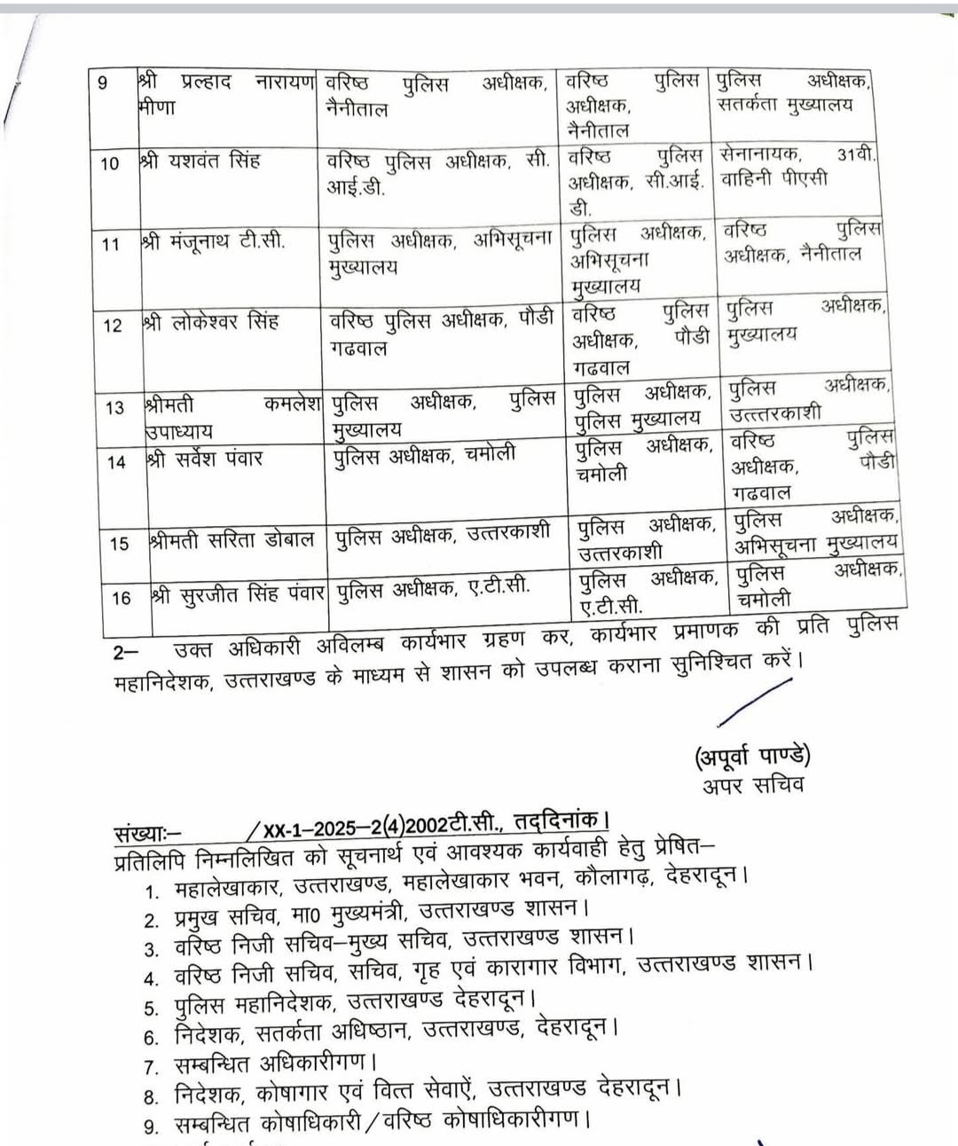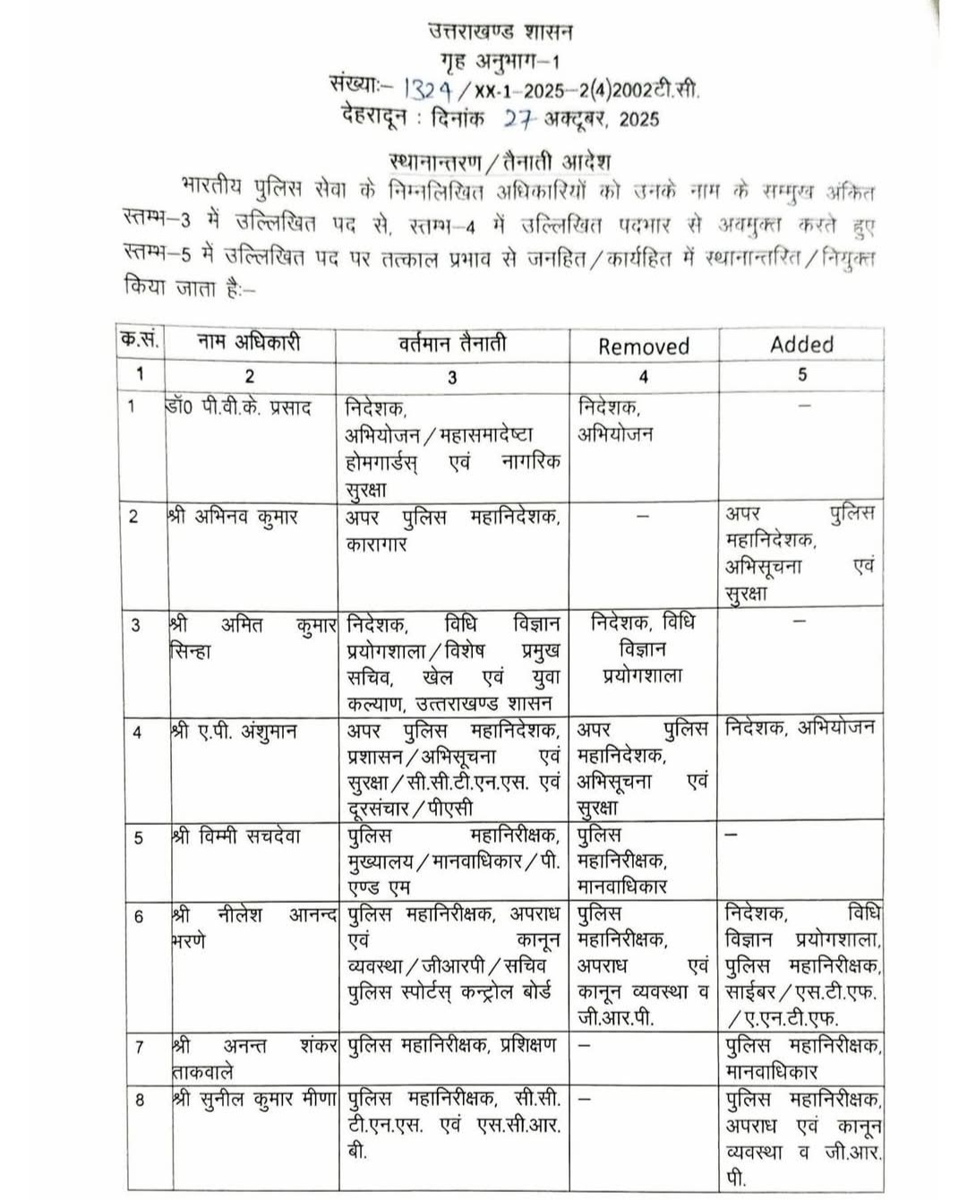 उत्तराखंड में आईपीएस अधिकारियों के हुए बंपर तबादले एसएसपी नैनीताल का भी तबादला