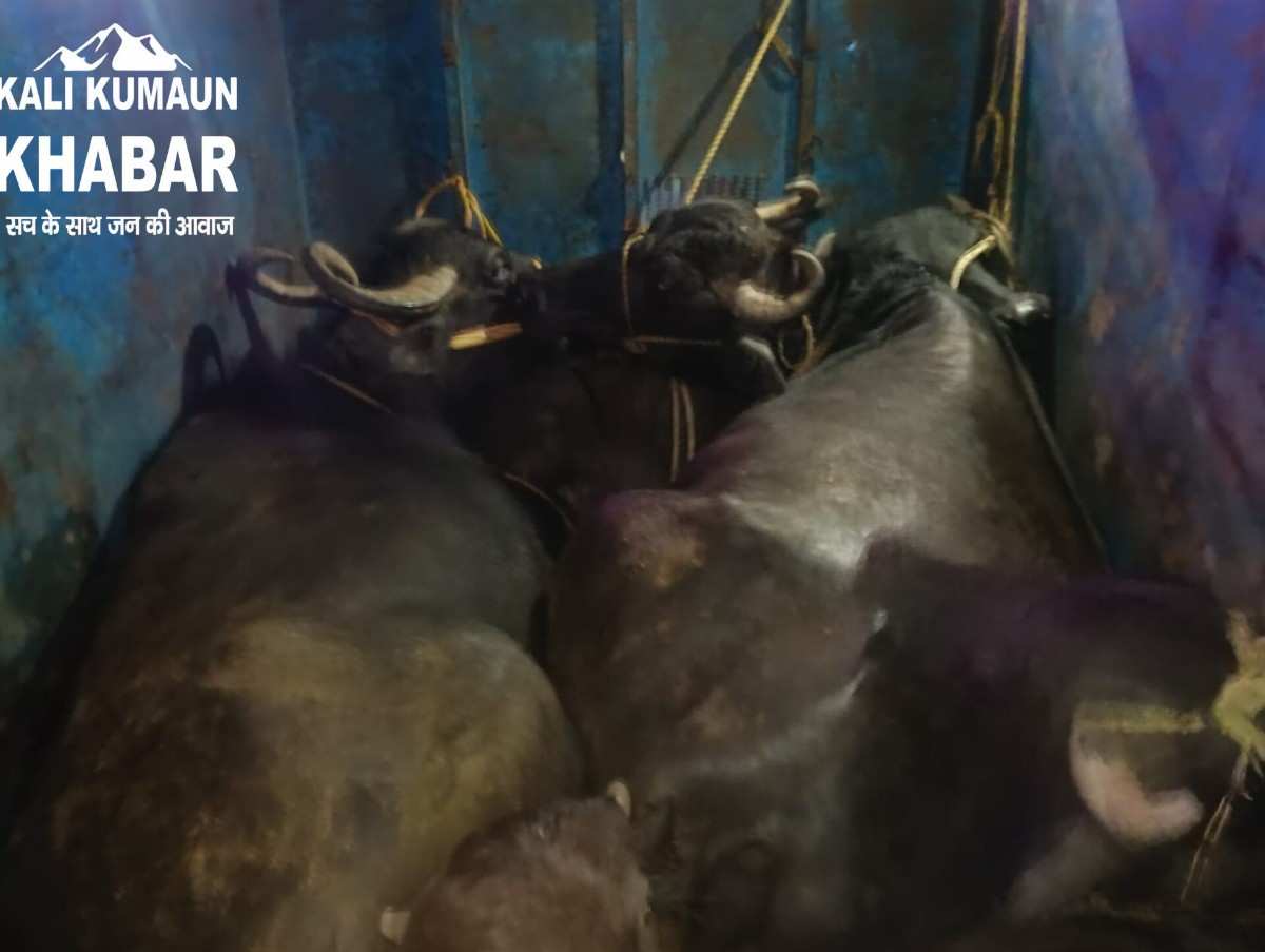 रिपोर्ट: लक्ष्मण बिष्ट : चंपावत:बजरंग दल/विहिप अमोड़ी ने पकड़ी भैंसो से भरी पिकअप पशु तस्करों पर मुकदमा दर्ज