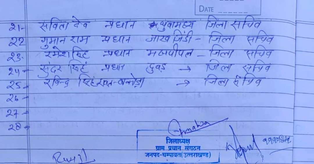 चंपावत जिला ग्राम प्रधान संगठन कार्यकारिणी का हुआ विस्तार।