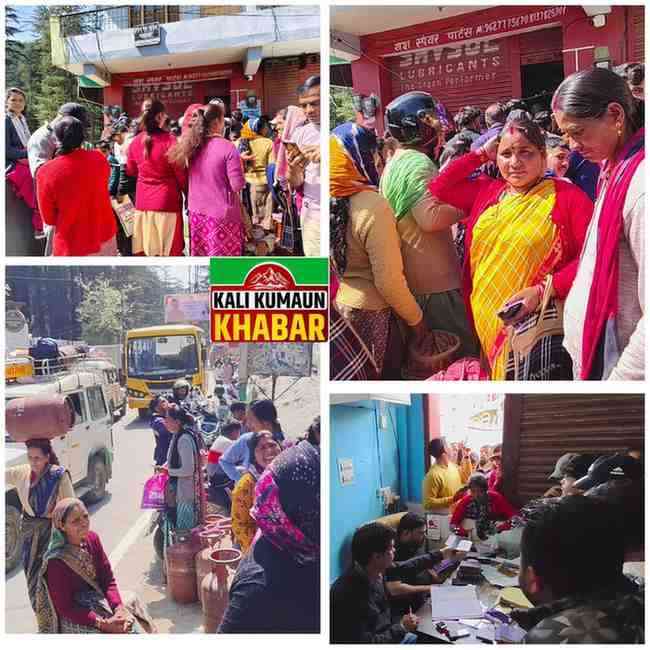 रिपोर्ट: लक्ष्मण बिष्ट : चंपावत:टनकपुर /बनबसा मे तहसीलदार की निगरानी में बटी एलपीजी गैस