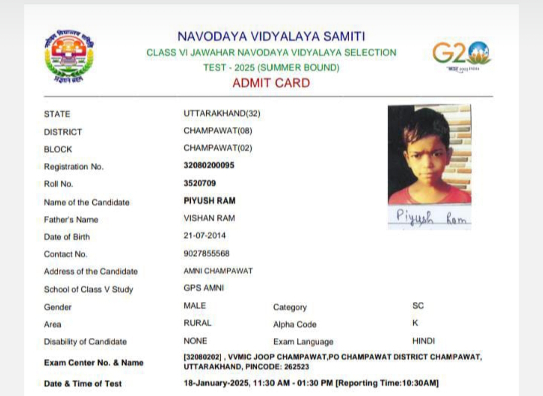 रिपोर्ट:लक्ष्मण बिष्ट 👹👹 : चंपावत:रा0प्रा0आमनी के होनहार छात्र पीयूष का जवाहर नवोदय विद्यालय में चयन