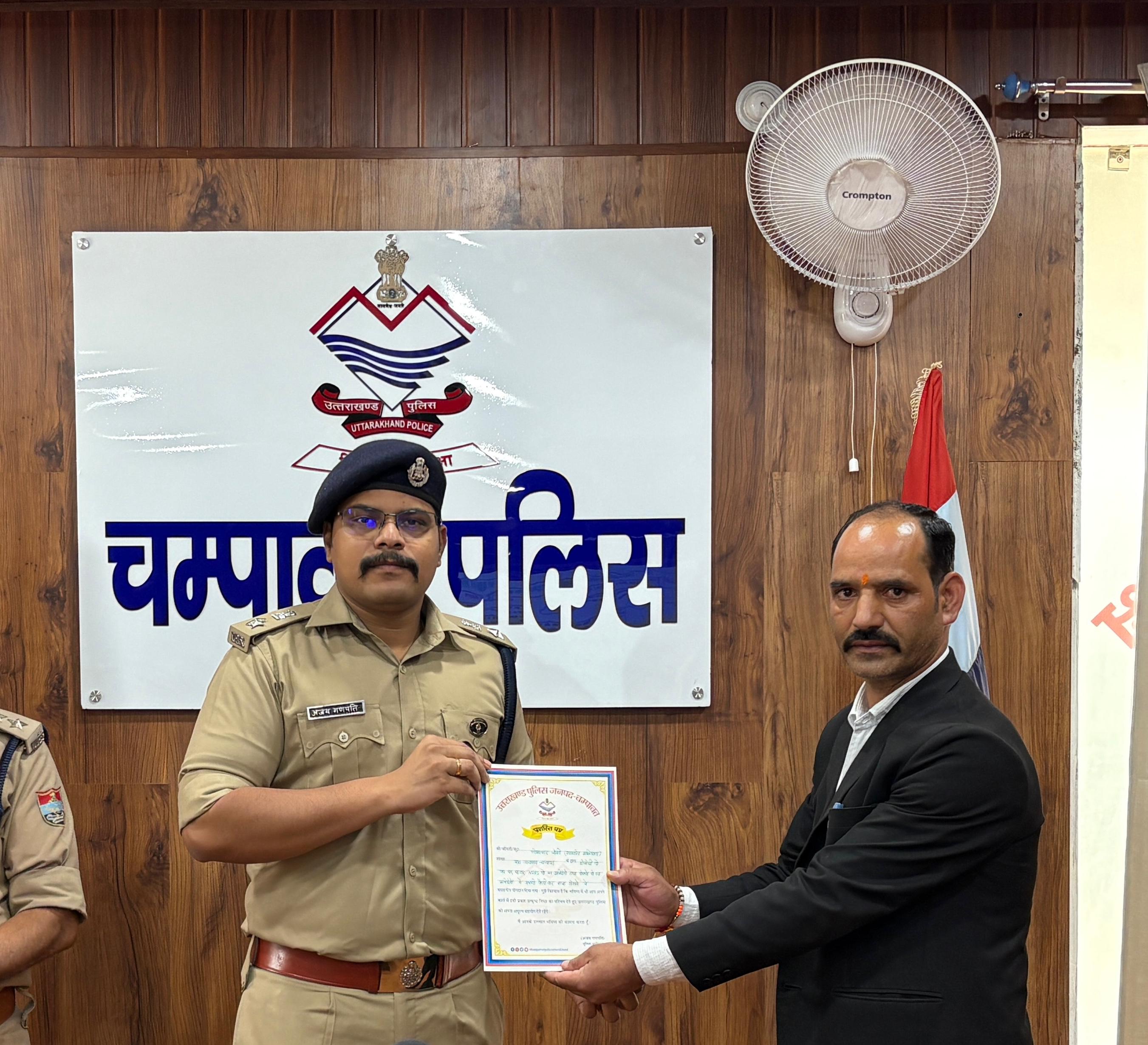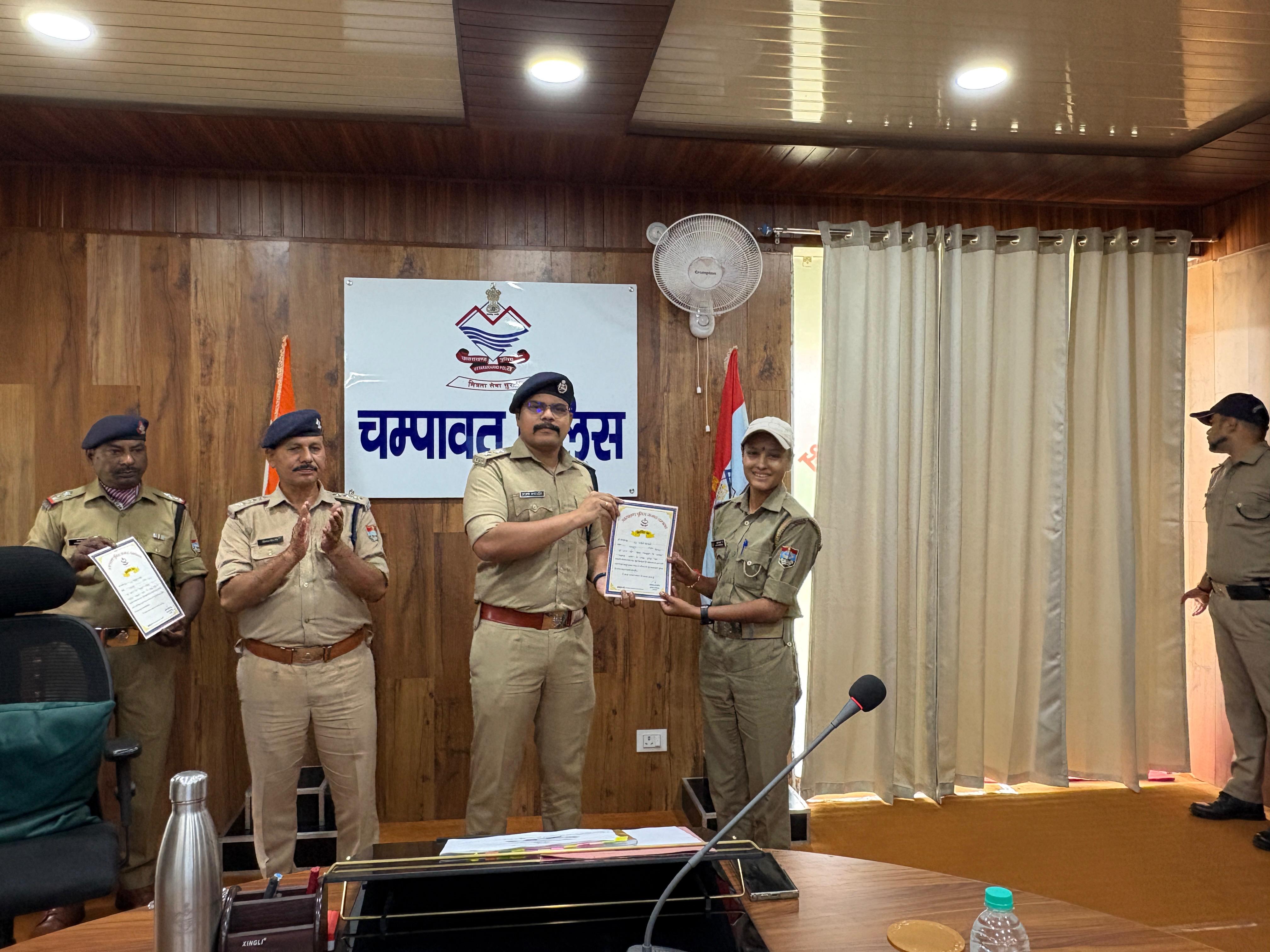09. उ0नि0  सोनू सिंह – एएनटीएफ में प्रजेंटेशन दिया गया गोष्टी के दौरान पुलिस अधीक्षक  चम्पावत द्वारा त्रिस्तरीय पंचायत चुनाव सकुशल सम्पन होने पर पंचायत चुनाव में महत्वपूर्ण भूमिका निर्वहन करने वाले जनपद के 32 पुलिस अधिकारीयों को प्रशस्ति पत्र देकर सम्मानित किया गयाअपराध गोष्ठी में  शिवराज सिंह राणा, क्षेत्राधिकारी  चंपावत,  कृष्ण सिंह मेहता निरीक्षक अभिसूचना इकाई,  भगवत सिंह राणा, प्रतिसार निरीक्षक, पुलिस लाइन,  हयात सिंह, प्रभारी निरीक्षक, यातायात, विजय सिंह अधिकारी, निरीक्षक दूरसंचार, निरीक्षक दिवान सिंह जलाल, रीडर, मनीष खत्री प्रभारी साइबर सैल/मीडिया सैल, सोनू सिंह, प्रभारी एएचटीयू, सहित समस्त प्रभारी निरीक्षक/ थानाध्यक्ष /एस0ओ0जी0/शाखा प्रभारी जनपद चंपावत तथा पुलिस लाइन, पुलिस कार्यालय, के पुलिस अधिकारी कर्मचारी गण मौजूद रहे।