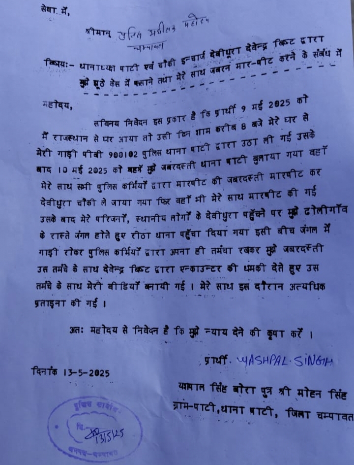 थानाध्यक्ष पाटी व चौकी इंचार्ज देवीधुरा पर पीट - पीटकर झूठे केस में फंसाने का आरोप ।