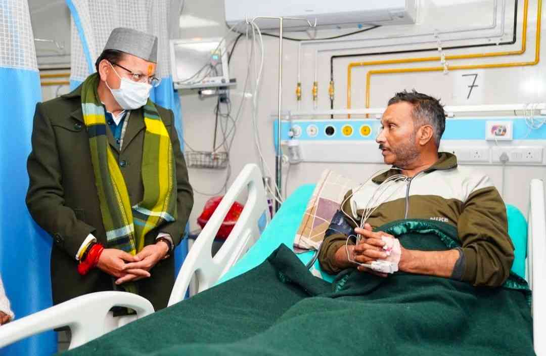 मुख्यमंत्री पुष्कर सिंह धामी ने आज राजकीय दून मेडिकल कॉलेज चिकित्सालय देहरादून पहुंचकर उपचार हेतु भर्ती वरिष्ठ पत्रकार खबर फास्ट न्यूज़ चैनल के उत्तराखंड ब्यूरो चीफ कैलाश जोशी का कुशलक्षेम जाना।इस अवसर पर मुख्यमंत्री ने जोशी एवं उनके परिजनों से भेंट कर उनका मनोबल बढ़ाया तथा शीघ्र स्वस्थ होने की कामना की। उन्होंने कहा कि प्रदेश सरकार पत्रकारों के स्वास्थ्य और सुरक्षा के प्रति संवेदनशील है तथा हर आवश्यक सहयोग प्रदान करने के लिए प्रतिबद्ध है।
