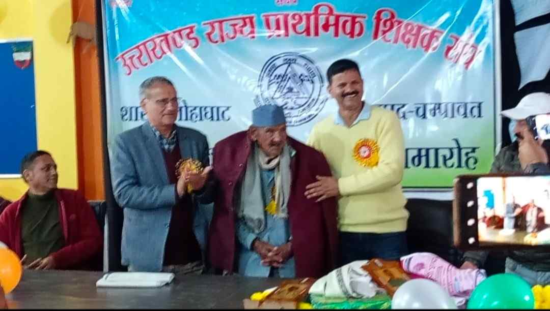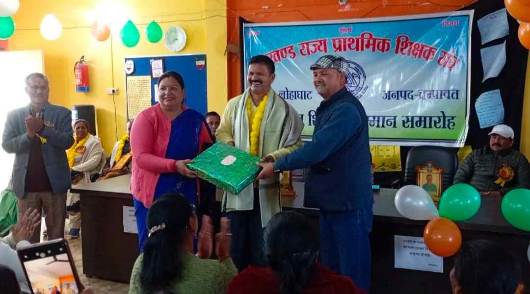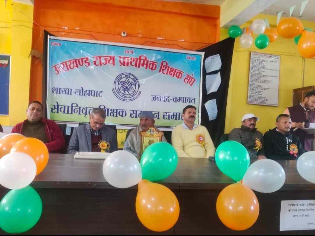 शिक्षक भवन लोहाघाट में आज प्राथमिक शिक्षक संगठन लोहाघाट इकाई द्वारा स्वैच्छिक सेवानिवृत्ति ले चुके प्राथमिक शिक्षक संगठन के जिला अध्यक्ष गोविन्द सिंह बोहरा सहित विगत दो वर्षों में सेवानिवृत्त शिक्षकों की विदाई एवं सम्मान किया गया। ब्लॉक मंत्री मयंक पुनेठा के संचालन एवं कार्यकारी जिला अध्यक्ष उत्तम फर्त्याल की अध्यक्षता में मुख्य अतिथि रूप में शतायु प्राप्त पूर्व प्रधानाध्यापक मोती सिंह मेहता थे।ब्लॉक अध्यक्ष कैलाश फर्त्याल ने अतिथियों सहित उपस्थित सभी शिक्षक /शिक्षिकाओं का स्वागत उद्वोधन किया। कार्यक्रम में वरिष्ठ शिक्षक लक्ष्मण सिंह मेहता ने गोविंद बोहरा को आदर्श शिक्षक के साथ कुशल नेतृत्वकर्ता बताते हुए उनके शिक्षा,शिक्षण एवं शिक्षार्थियों तथा शिक्षक हितों हेतु तत्परता की प्रशंसा की। विशिष्ट अतिथि खण्ड शिक्षा अधिकारी घनश्याम भट्ट ने सभी सेवानिवृत्त शिक्षकों को शुभकामनाएं देते हुए सभी शिक्षकों/शिक्षिकाओं से समय पालन कर विद्यालयों में नियमित उपस्थिति देकर विद्यालयों को संवारने की अपील की। गोविंद बोहरा ने सभी से शिक्षण को प्राथमिकता में रख शिक्षकों से छात्र हित एवं विद्यालय विकास में तत्परता का अनुरोध किया।