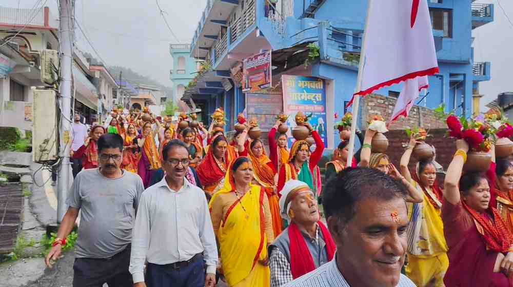 कलश यात्रा में पालिका अध्यक्ष गोविंद वर्मा, सतीश चंद्र पांडे ,गोविंद बोहरा,राजू गढ़कोटी ,दीवान पुजारी, अनिल जोशी, रंजीत अधिकारी, नवीन नाथ,टीका देव खर्कवाल, दीप राय, सचिन जोशी भैरव दत्त राय ,चंद्रशेखर बगोली, कैलाश मेहता, कमल राय , हेमंत राय , मंटू राय सहित कई लोग व महिलाएं मौजूद रही
