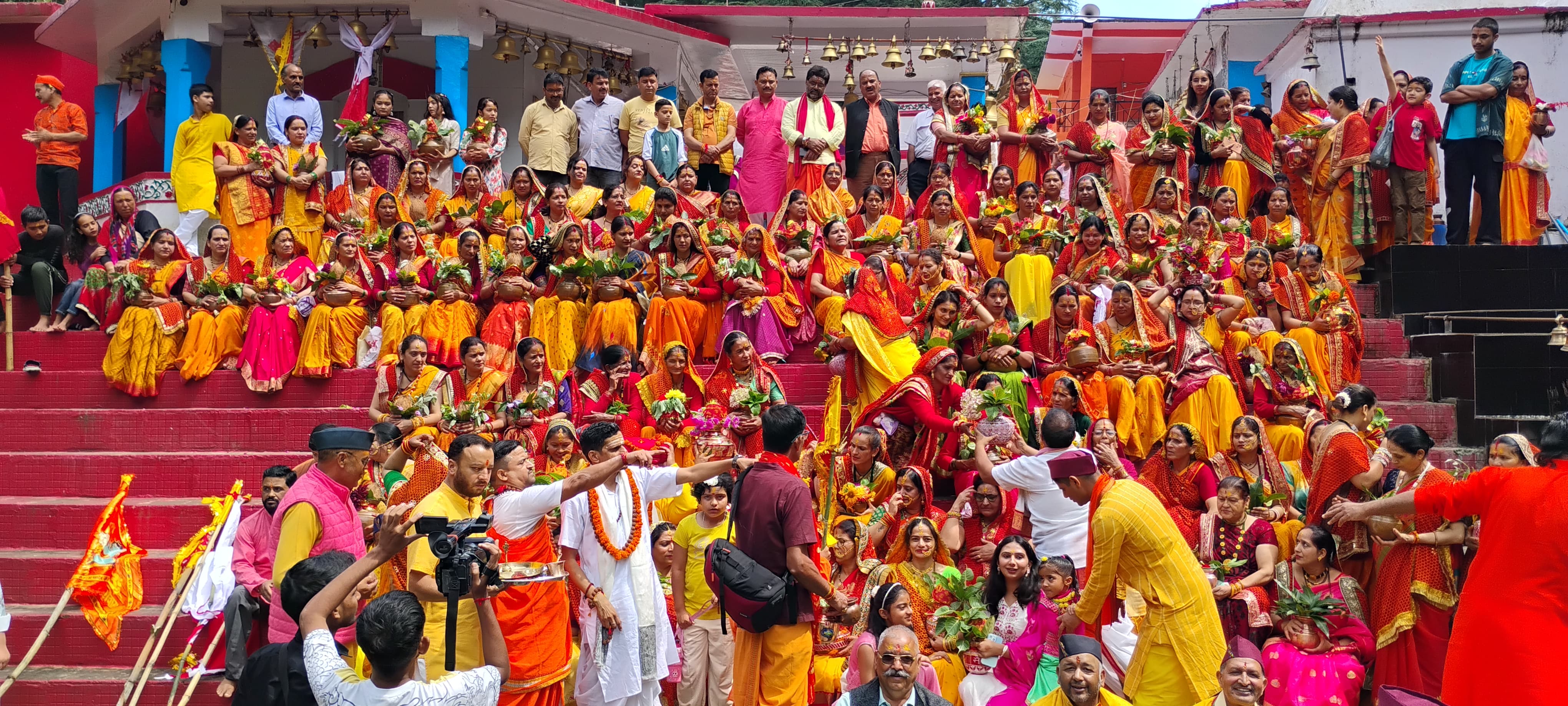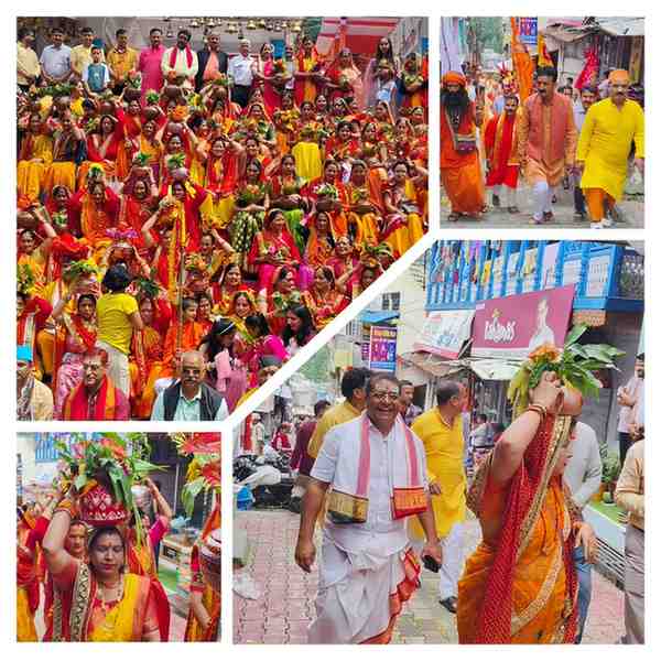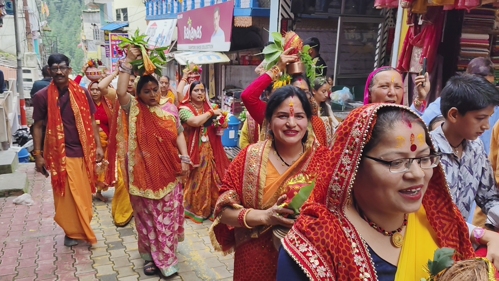 कुमाऊनी परिधानों में सज धज कर सैकड़ो महिलाओं ने निकाली भव्य कलश यात्रा ।