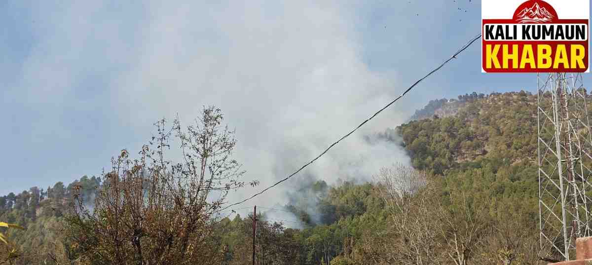 रिपोर्ट :लक्ष्मण बिष्ट : लोहाघाट:पाटन पाटनी के जंगलों में लगी भीषण आग। चारों ओर धुआं ही धुआं।