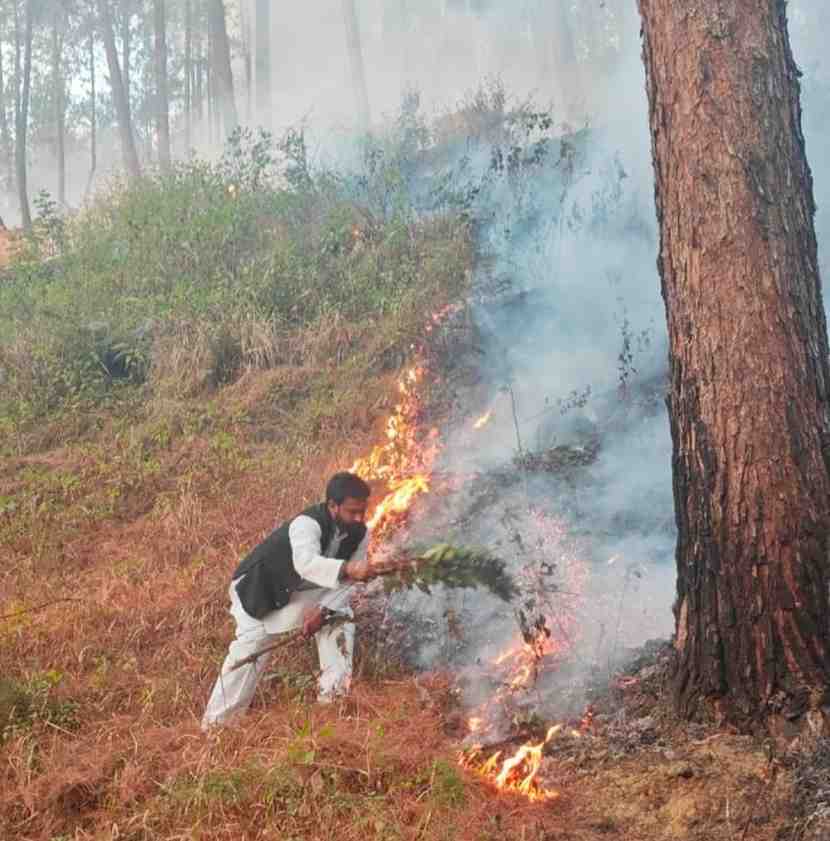 झूमाधुरी के जंगल में लगी आग पर वन विभाग व युवाओं ने पाया काबू।