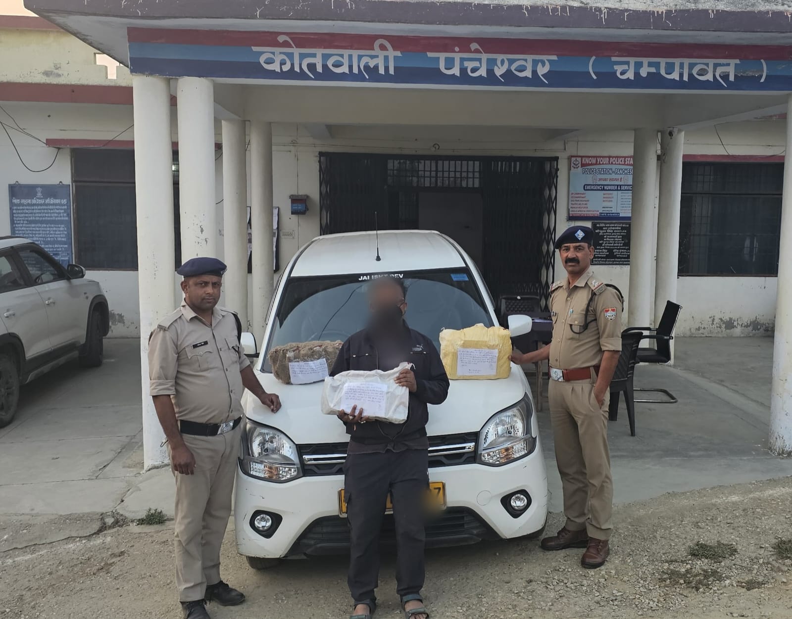 पंचेश्वर पुलिस द्वारा अवैध शराब की तस्करी व कारोबार करने वाले व क्षेत्र में दबंगई दिखाने वाले अपराधिक प्रवृत्ति के व्यक्ति के खिलाफ कठोर कानूनी कार्यवाही करते हुए गुंडा एक्ट में चालान किया गया।एसपी चंपावत अजय गणपति के द्वारा जिले के नशा तस्करों के खिलाफ कड़ी कार्रवाई करने के निर्देश दिए गए है।एसपी के निर्देश पर कोतवाली पंचेश्वर पुलिस द्वारा थाना पंचेश्वर क्षेत्र में कई वर्षों से लगातार अवैध शराब की तस्करी एवं कारोबार करने तथा कानून एवं शांति व्यवस्था प्रभावित करने वाले अपराधिक प्रवृत्ति के भुवन चंद्र उप्रेती पुत्र स्वर्गीय श्री पुष्कर दत्त उप्रेती(46) निवासी दिगालीचौड़ कोतवाली पंचेश्वर के खिलाफ कड़ा कदम उठाते हुए धारा 03/04 उत्तर प्रदेश गुंडा नियंत्रण अधिनियम 1970 के तहत चालानी कार्यवाही करते हुए चालान , "माननीय न्यायालय जिला मजिस्ट्रेट जनपद चंपावत को प्रेषित किया गया है। आरोपी के खिलाफ पूर्व में भी कई मुकदमे दर्ज है। कोतवाली प्रभारी हेमंत सिंह कठेत ने कहा क्षेत्र में नशा तस्करी व अपराधिक गतिविधियों में संलिप्त व अपराधिक प्रवृत्ति के व्यक्तियों के खिलाफ जानकारी एकत्र कर आवश्यक वैधानिक कार्यवाही की जा रही है।