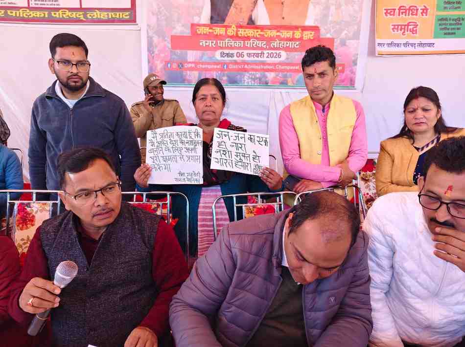 आज शुक्रवार को धामी सरकार के द्वारा चलाए जा रहे जन-जन की सरकार जन-जन के द्वारा कार्यक्रम के तहत जिला अधिकारी चंपावत मनीष कुमार की अध्यक्षता में नगर पालिका लोहाघाट के द्वारा रामलीला मैदान में जन-जन की सरकार जन जन के द्वार शिविर का आयोजन किया। जिसमें नगर क्षेत्र के अलावा दूर-दूर ग्रामीण क्षेत्र से पहुंचे लोगों ने जिलाधिकारी चंपावत मनीष कुमार के सामने अपनी समस्याओं को प्रमुखता से रखा तथा समाधान की मांग की।