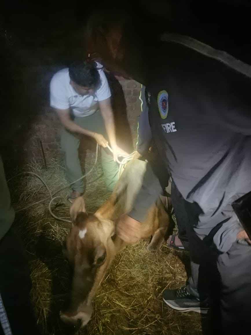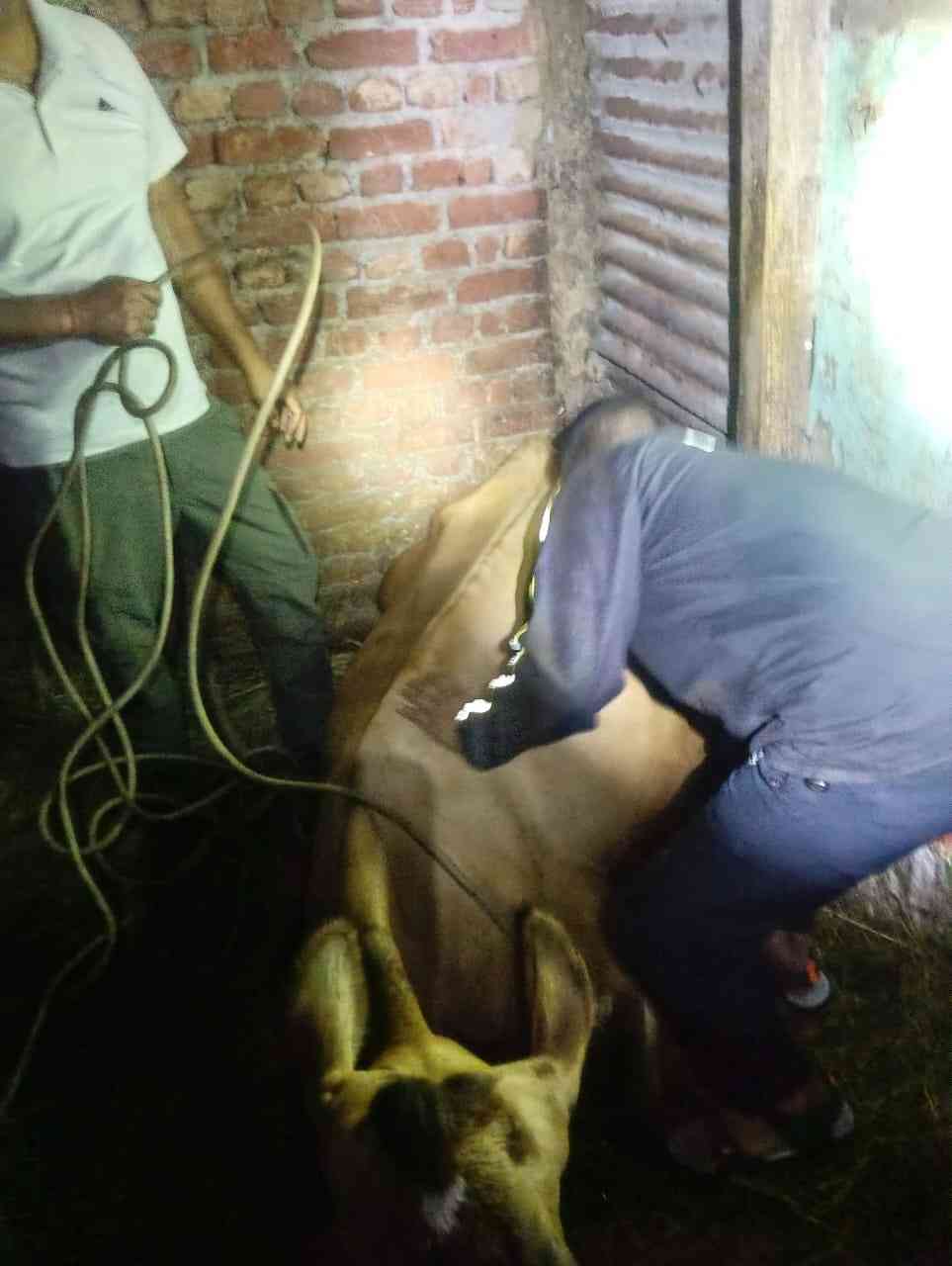 गाय के पेट में धसा लोहे का पाइप देवदूत बनी फायर ब्रिगेड बचाई जान।