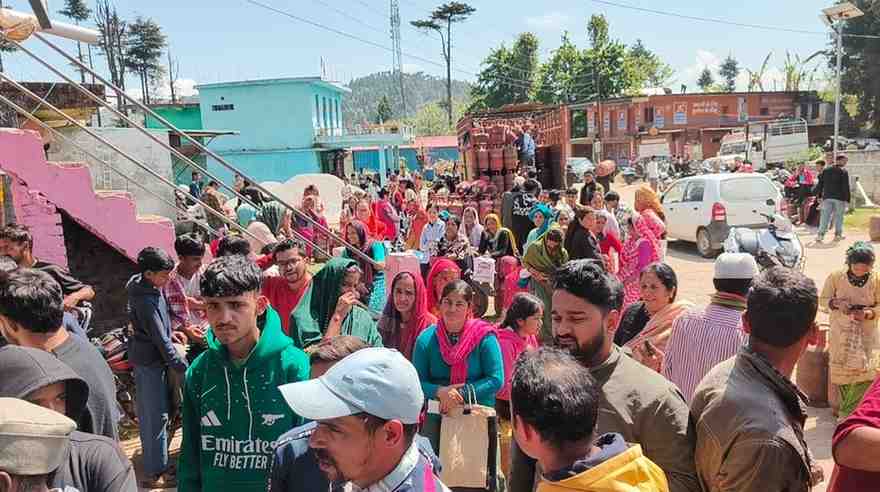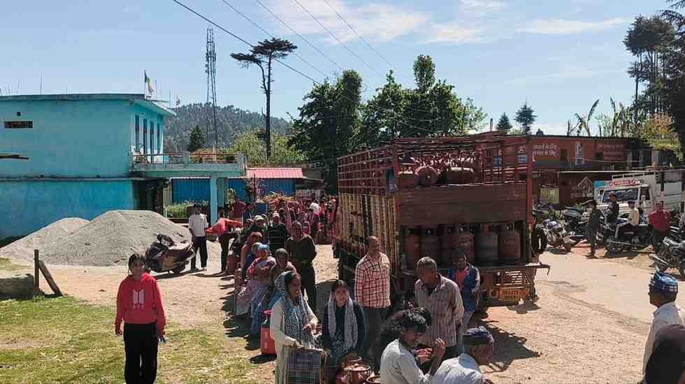 रिपोर्ट :लक्ष्मण बिष्ट : लोहाघाट:चोमेल में रसोई गैस की गाड़ी पहुंचने से राहत। कई लोगों को नहीं मिल पाई गैस ।