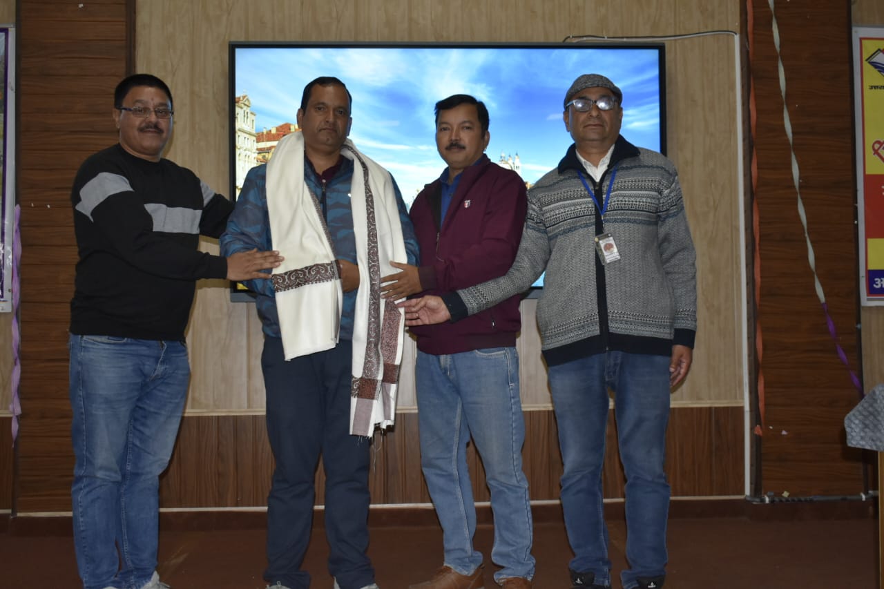 शैलेश मटियानी राज्य उत्कृष्ट शिक्षक पुरस्कार प्राप्त शिक्षक प्रकाश चन्द्र उपाध्याय को शॉल ओढ़ाकर किया सम्मानित।
