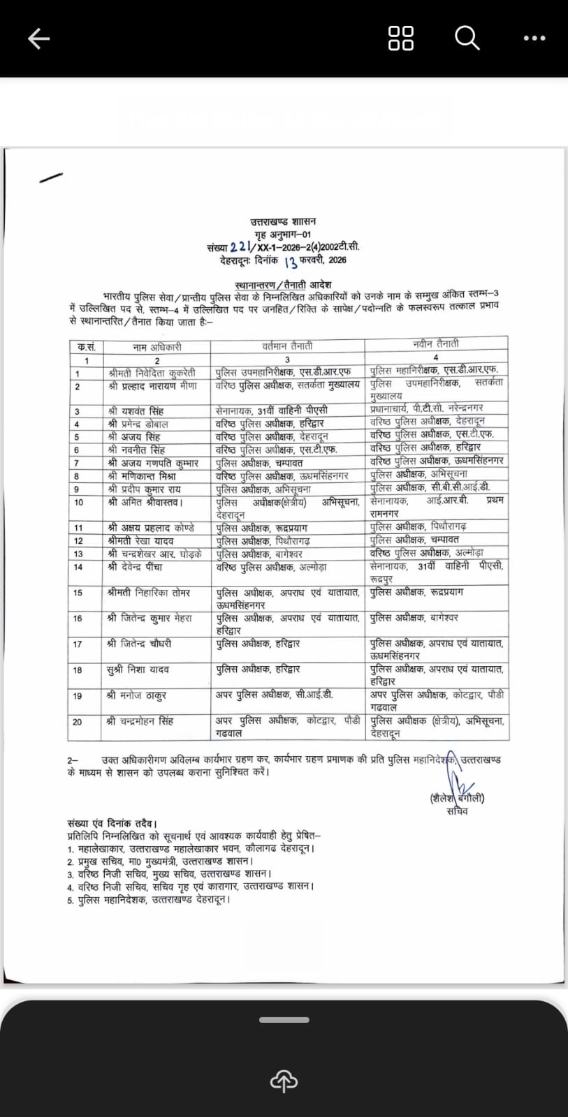 शासन पुलिस विभाग में बंपर तबादला किए है ।जिसकी सूची जारी कर दी गई है चंपावत के एसपी अजय गणपति को वरिष्ठ पुलिस अधीक्षक उधम सिंह नगर बनाया गया है। एसपी पिथौरागढ़ रेखा यादव होंगी एसपी चंपावत। देखी सूची किसको कहा और क्या जिम्मेदारी मिली।