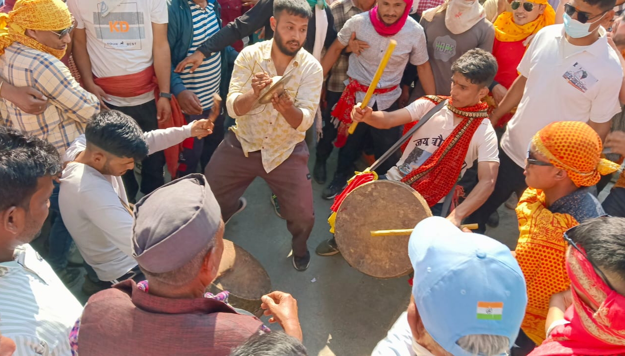 ढोल नगाड़ों के साथ जत्थों ने की मंदिर की परिक्रमा।बकासुर बध की खुशी में मनाया जाता है चेतोला