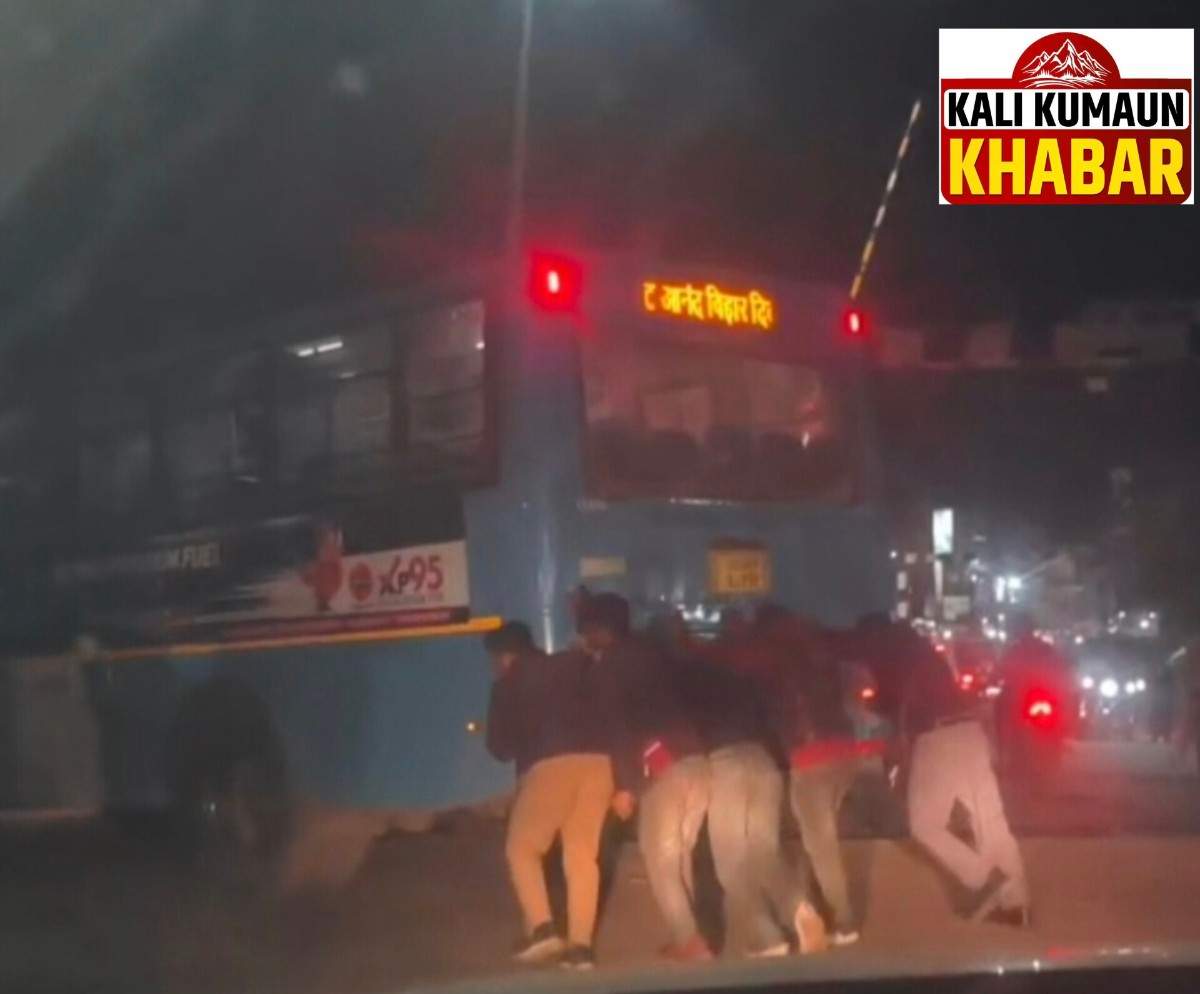 रिपोर्ट:लक्ष्मण बिष्ट : टनकपुर:बीच सड़क खराब लोहाघाट से दिल्ली जा रही रोडवेज बस लगा जाम धक्का देकर हटाई बस।