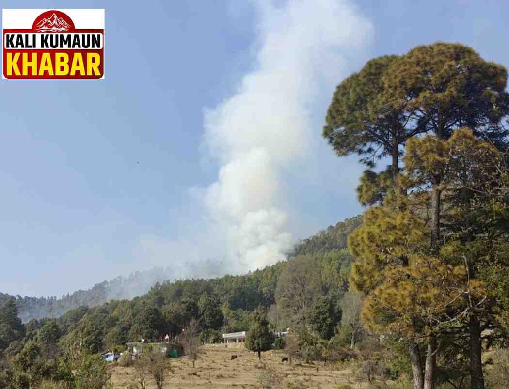 रिपोर्ट :लक्ष्मण बिष्ट : लोहाघाट:पाटन पाटनी के जंगलों में लगी भीषण आग। चारों ओर धुआं ही धुआं।
